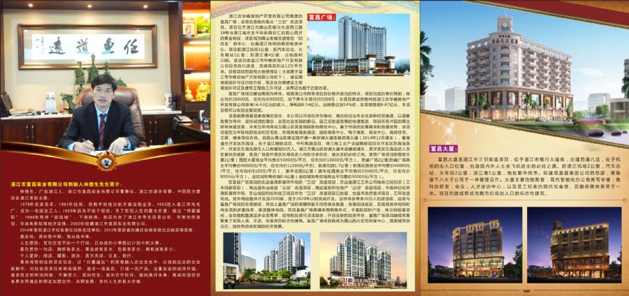 抓住湛江市十二五規(guī)劃和五年崛起的歷史機遇,獎自己的戰(zhàn)略規(guī)劃服務于城市發(fā)展規(guī)劃,將企業(yè)戰(zhàn)略與城市戰(zhàn)略協調一致,在未來十年將重點向旅游度假地產、金融、商業(yè)地產、養(yǎng)老地產等方向進行投資發(fā)展,擬組建富昌實業(yè)集團股份,打造國內一流的現代化企業(yè)集團。并最終實現上市發(fā)展的遠期目標。